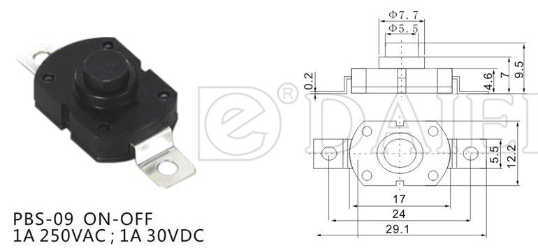 Button switch PBS-09 OFF-ON