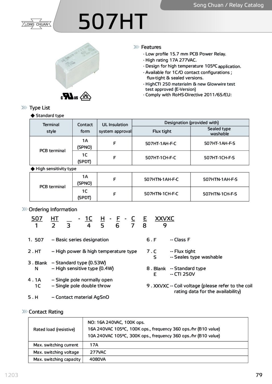 Relay DC24V/1087om,0.53W,250VAC/28VDC/17A,H16x29x12.5mm,1-к.гр.(НО/НЗ),8-изв.растер-7.5ммм, RELAY 507HT-1CH-F-C 24VDC,