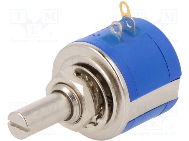 Потенциометър: аксиален, многооборотен, 2W, ±5%, 6,35mm,Ø22x18mm,линейна,250000цикли,Дължина на оста 13mm, 470Р, 1К,10К,100к,