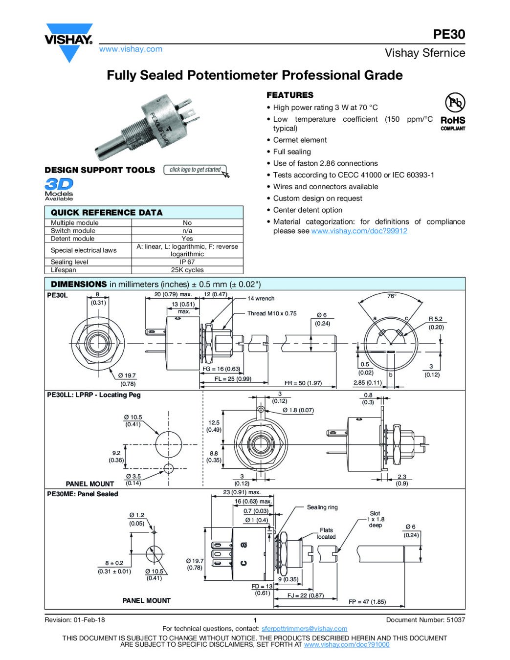 PE30L0FL103MAB--Fully Sealed Potentiometer Professional Grade,