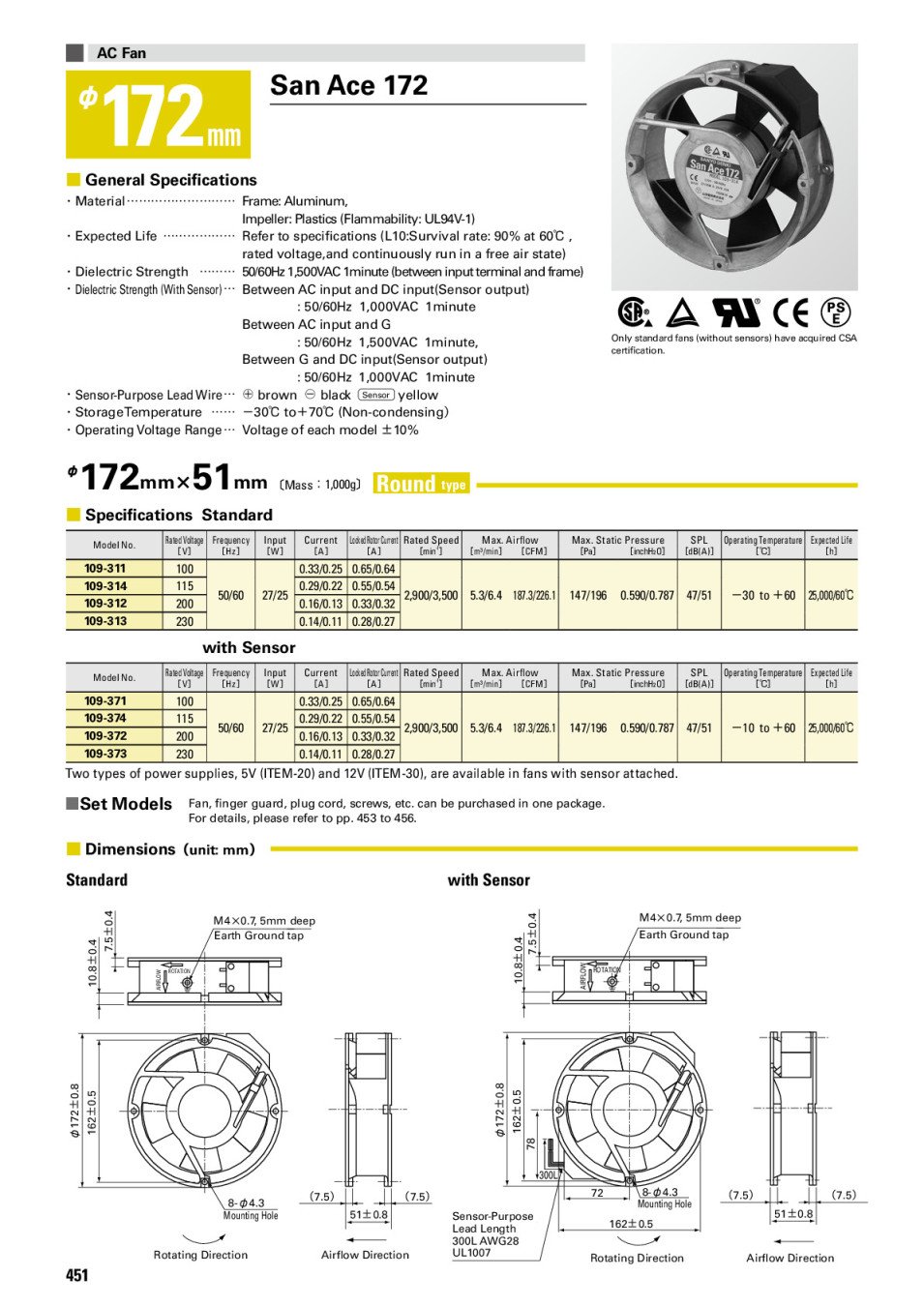 FAN 109-312 172mm 220V AC F 172mm x 52mm 0.16A 220V Termal Protected DYNA ACE , :SAN ACE,