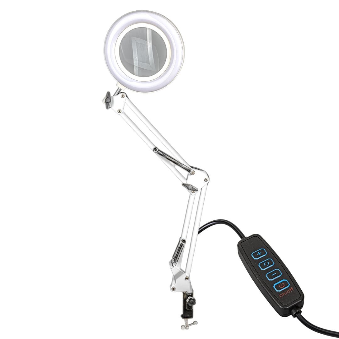Лупата е оборудвана с 64 вградени светодиода и предлага 3 различни цветови режима: дневна светлина, бяло и топло бяло. Освен това диаметърът на лещата има регулируем интензитет на светлината и вградено устройство за управление на режима.