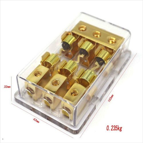За високомощен аудио клон или клон и окабеляване, като стерео уредба за кола. Разделете 4G захранващия кабел на 8AWG cable inputs, four 8AWG cable Материал: поликарбонатна пластмаса, цинкова сплав. Размери:10,5 x 7,6 x 3,5 см ,