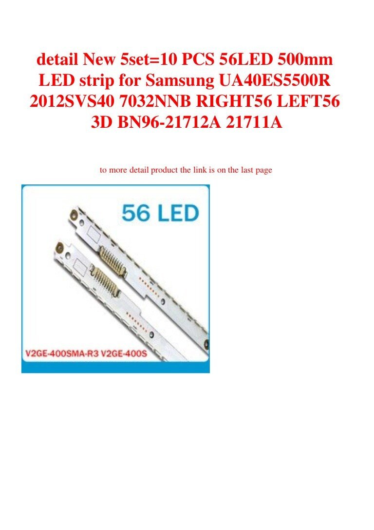 56 Diodes-3V size:50cm 1set-2pcs ; L+R;connecto:10 pins ;Panel Model: LTJ400HV05-L , LTJ400HV05-C , LTJ400HM09-L ;BN96-21711A+BN96-21712A; V1GE-400SMA-R3; V1GE-400SMB-R3 40NNB3D-7032LED-MCPCB-L - V2GE-400SMA-R3 - 56 LEDLİ 50 CM LED strip for Samsung UA40ES5500R 2012SVS40 UE40ES6307 , UE40ES6340S , UE40ES6140W , UE40ES6200S , UE40ES5507K BN96-21712A+BN96- 21711A;V2GE-400SMA-R3+V2GE-400SMB-R3;