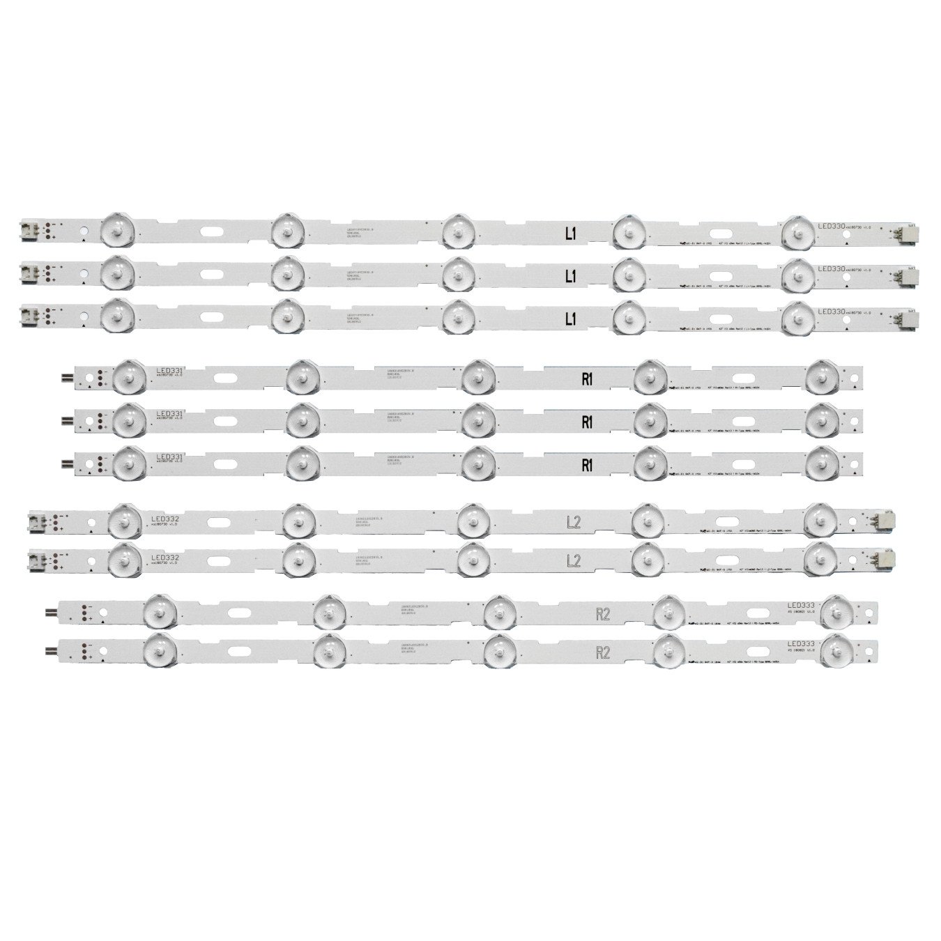 5 Diodes size:41.5cm 1set= 3L1 +3R1 +2L2 + 2R2 42 inch LG TV LED Backlight Strips for LG 6916L-1405A R2, Lamp Power: 2V /led, 5 diode, YHK418 JC 1set= 3L1 +3R1 +2L2 + 2R2 6916L-1403A R1, 6916L-1404A L2, 6916L-1405A R2 TV Model: 42LN5300-UB BUSDLJR 42LN5300-UB BUSYLJR 42LN5300-UB BU Panel Sticker Number: LC420DUE-SFR5 LC420DUE-SFR2,