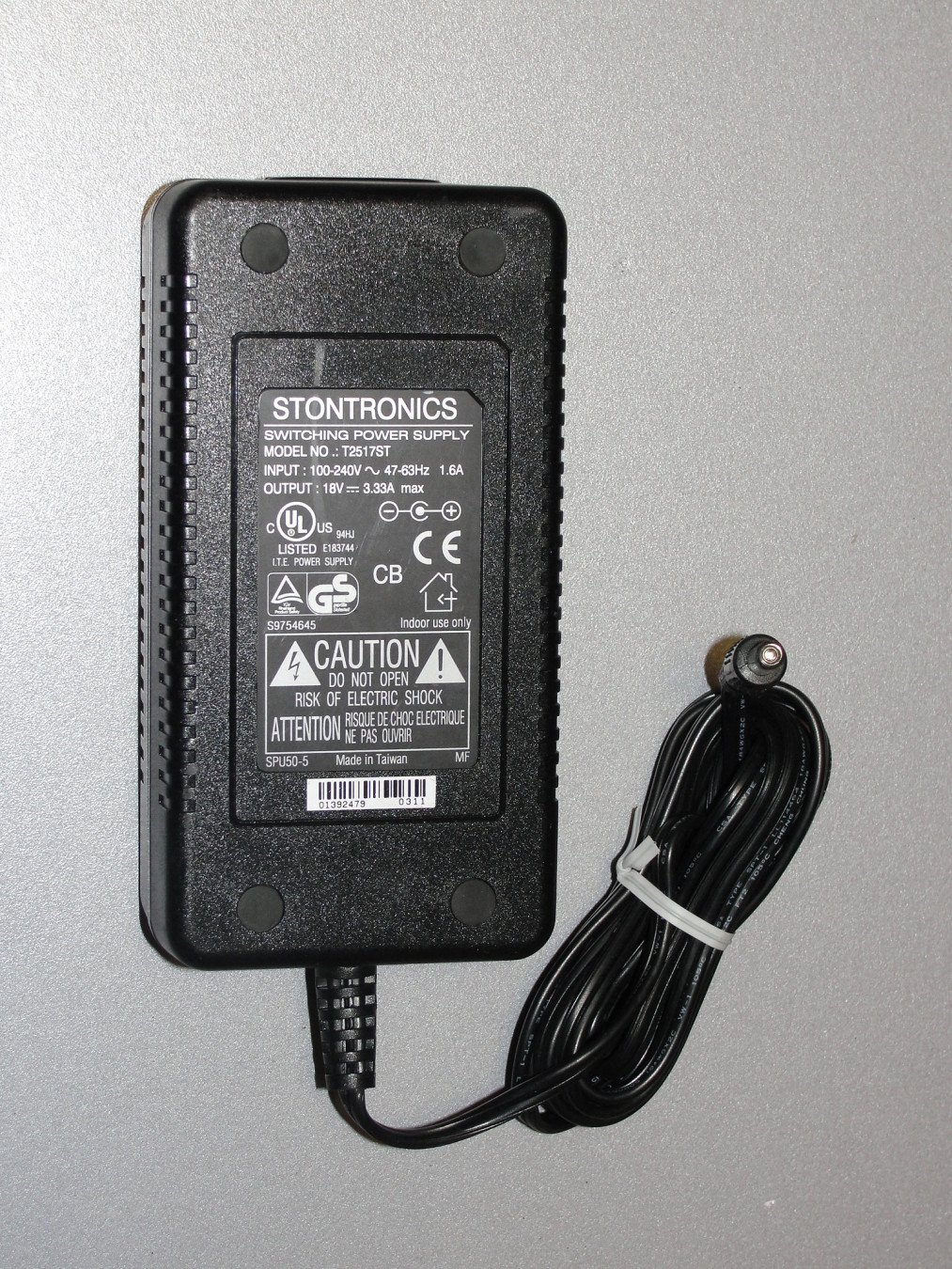 AC/DC T2517ST Input: 100-240V 47-63HZ 1,6A,Output: 18V 3.33A Input Socket & 2.1mm C+ve output connecto,
