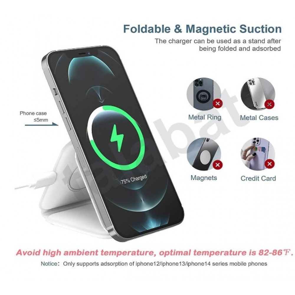 Безжична магнитна зарядна станция - Бял 18 W, съвместима с iPhone 14/13/12/11, AirPods, i-Watch