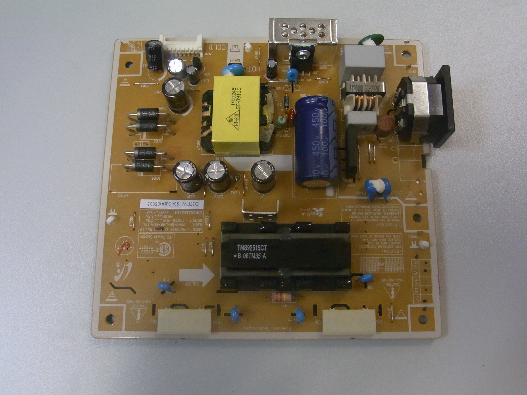 POWER SUPPLY BN44-00121B PWI1704SJ SAMSUNG SM931F, 940NW IC PC817, FSDM0465R, INVERTER TMS91365CT, MBR10150CT, AF4512C, FAN7311, 4 LAMPI , INPUT 100-240V 50HZ 1.0A, OUTPUT 5.1V 2.0A 15V 0.4A,