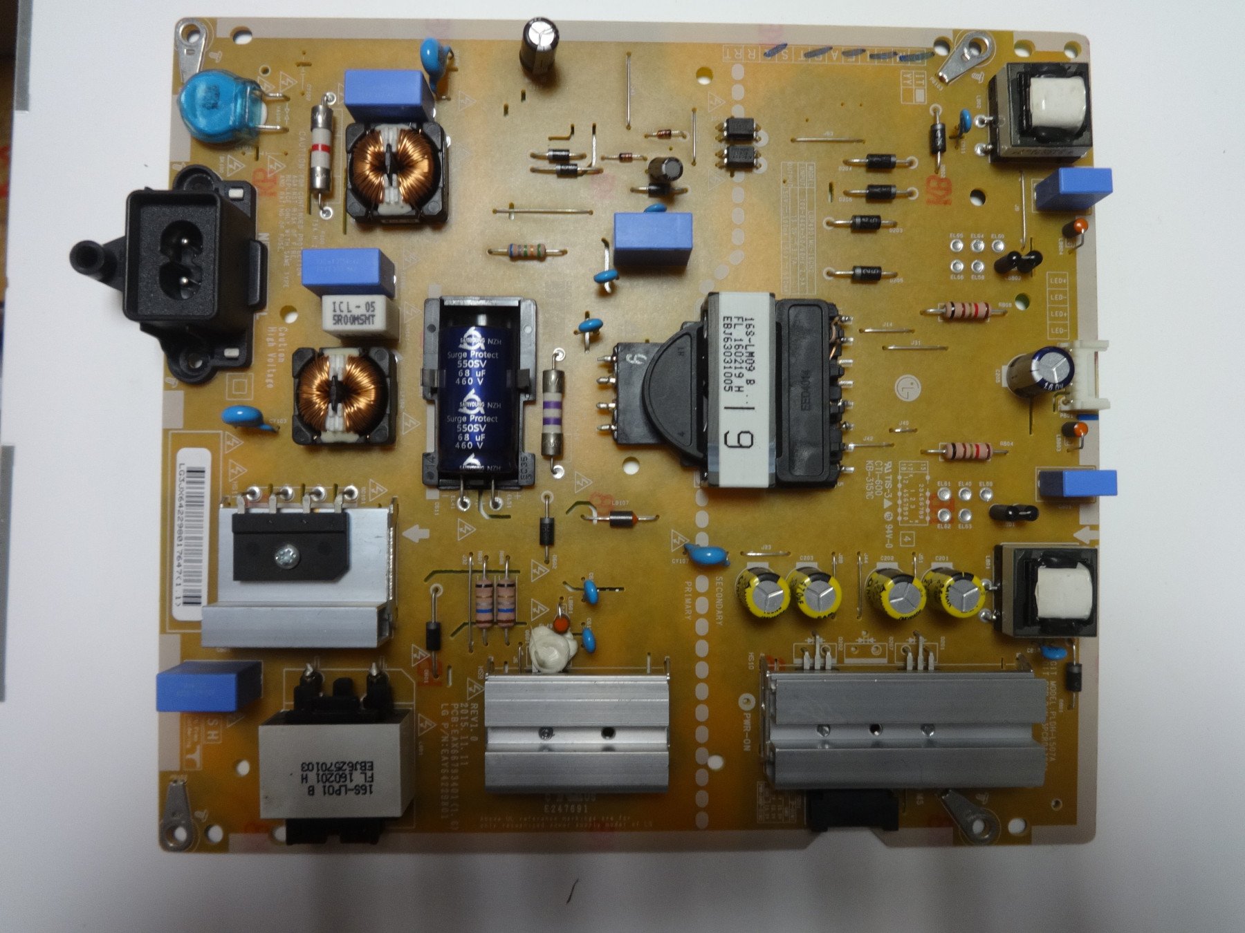 Захр.платка POWER SUPPLY EAX66793401(1.6) EAY64229801, LGP49DIMU-16CH2, PLDH-L507A 3PCR01388A, IC MDD7N25, D10XB60, FL 160219, SDURD560A, MAP3516, SSC3S921, СТАТУС-НЕ ВКЛ,