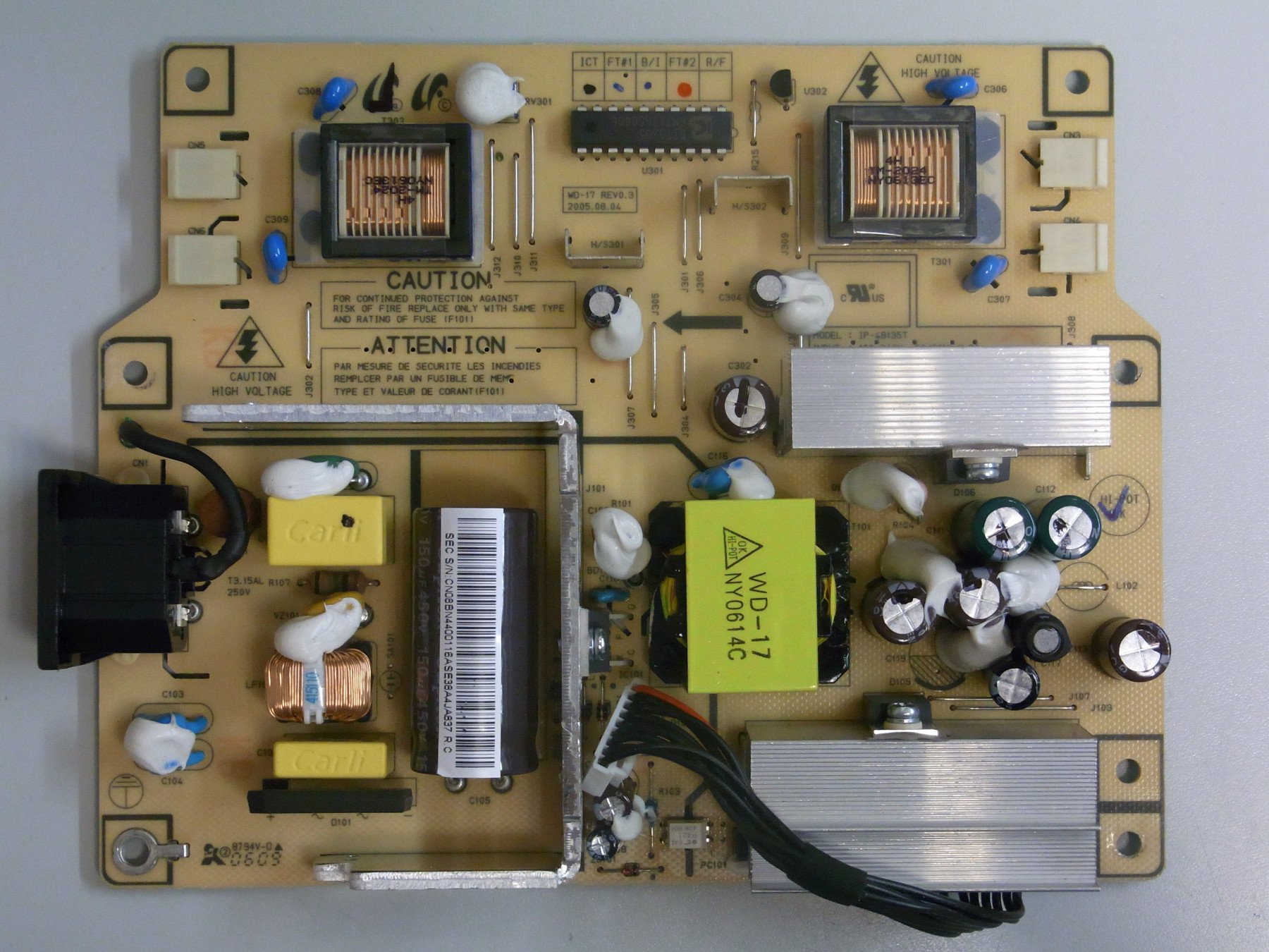 POWER SUPPLY IP-48135T WD-17 REV0.3 BN44-00116A SAMSUNG SM910MP(MZ19F) IC BIT3105, INVERTER TM-2024, MBRF20100CT, P421, 4501GM, TOP247YN ,