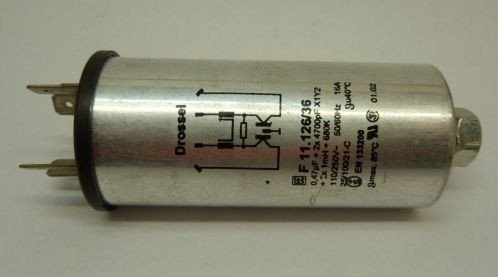 0.47uF+2x4.7nF+2x1mH+680K 250VAC Miele CVA 620 Kondensator Drossel F 11.126/36 110/250V 50/60Hz 16A max.85°,