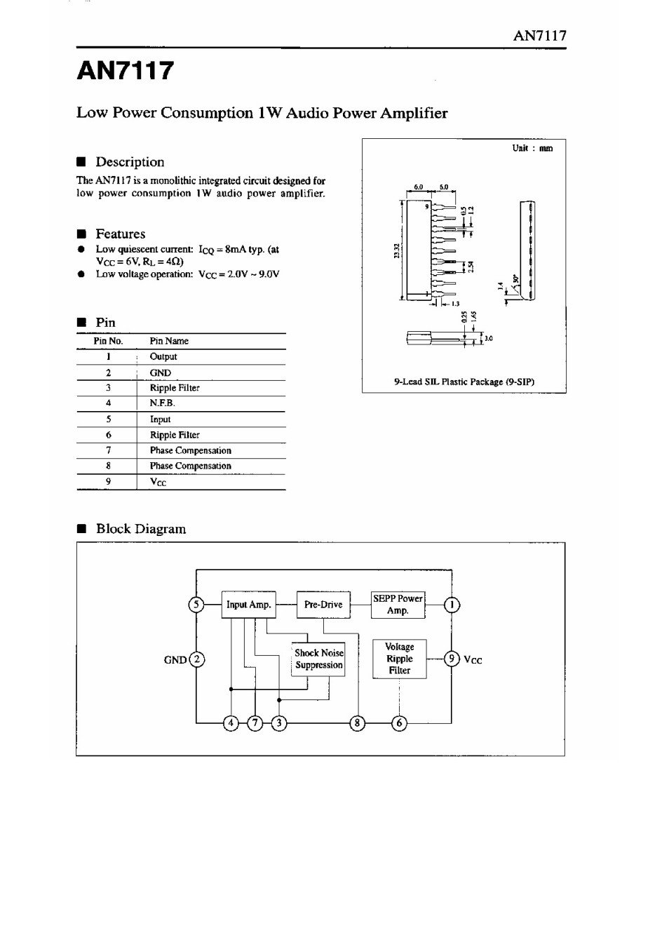 1.0W AUDIO POWER AMP. 9P SIP09 ,