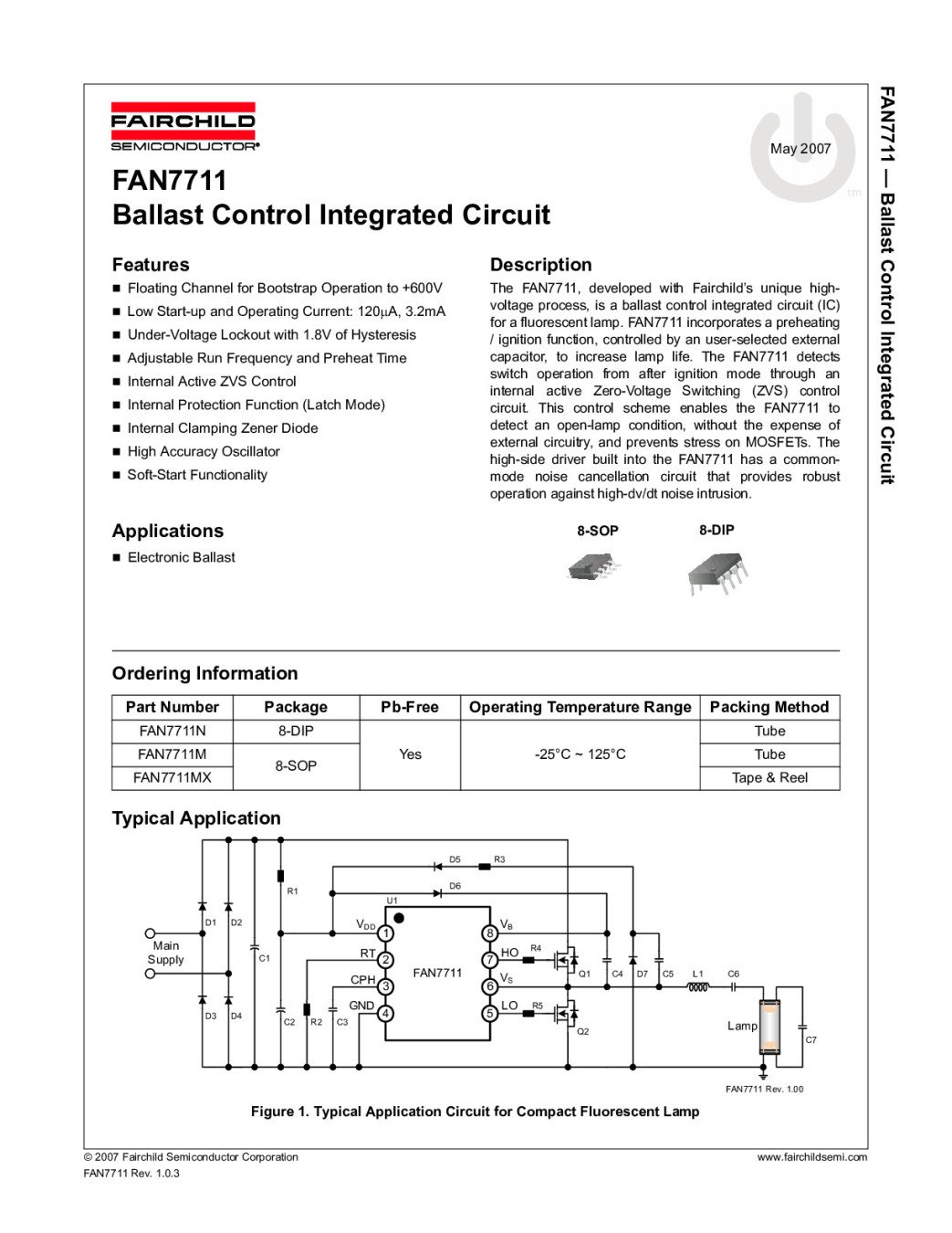 Ballast Control Integrated Circuit FAN7711 DIP, DK3113 L127GH FAN7711,