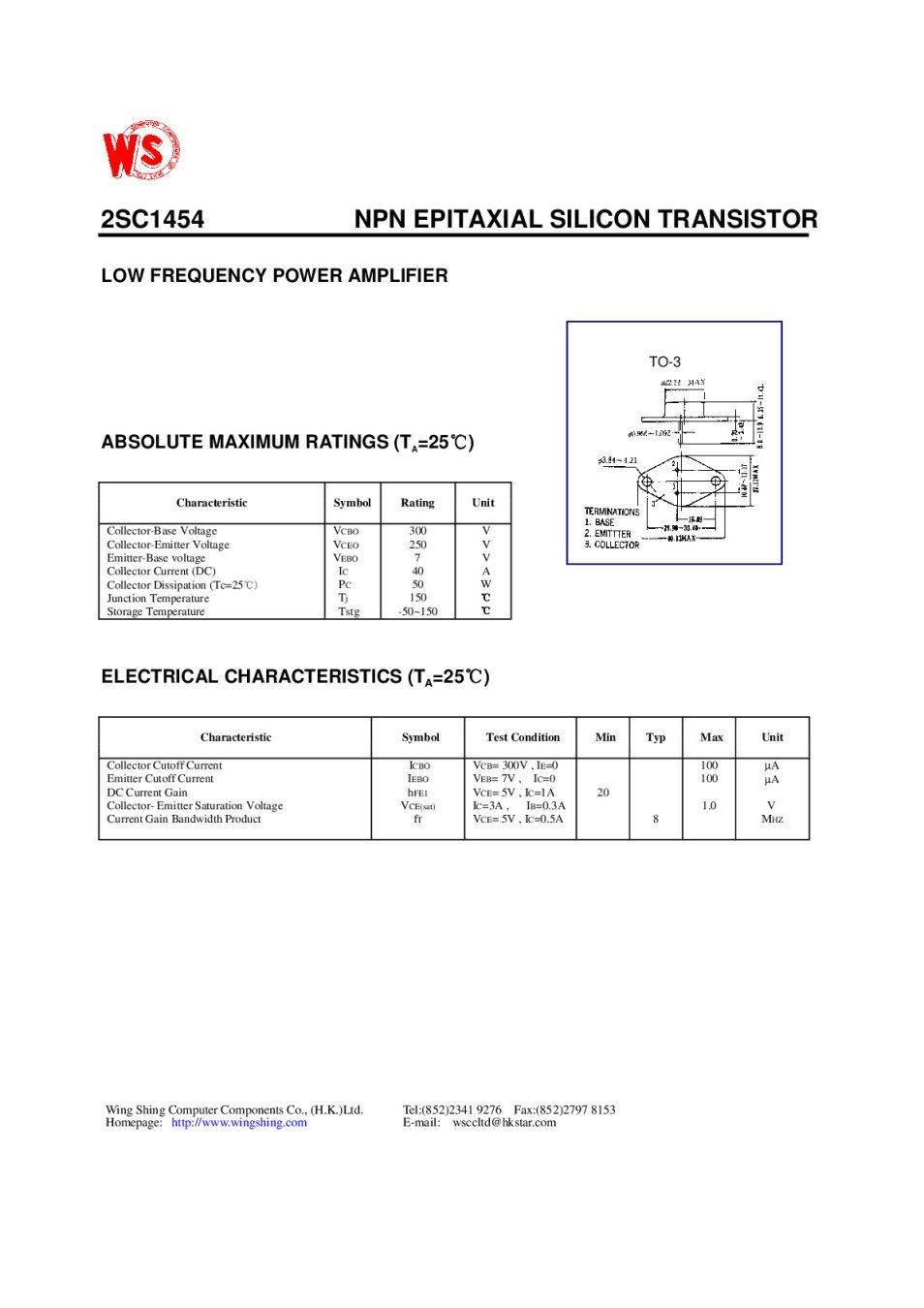 2SC1454 TO-3 Original