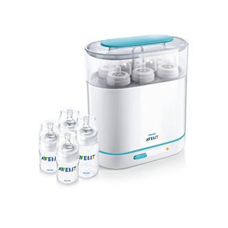 Стелиризатор SCF285/03 , SCF284, Express Electric Steam SteriliserPhilips AVENT Електрически паров стерилизатор "3 в 1" SCF284/03 Електрически стерилизатор. до 6 шишета 330ml, за 6 минутиПарата унищожава 99.9% от бактериите,