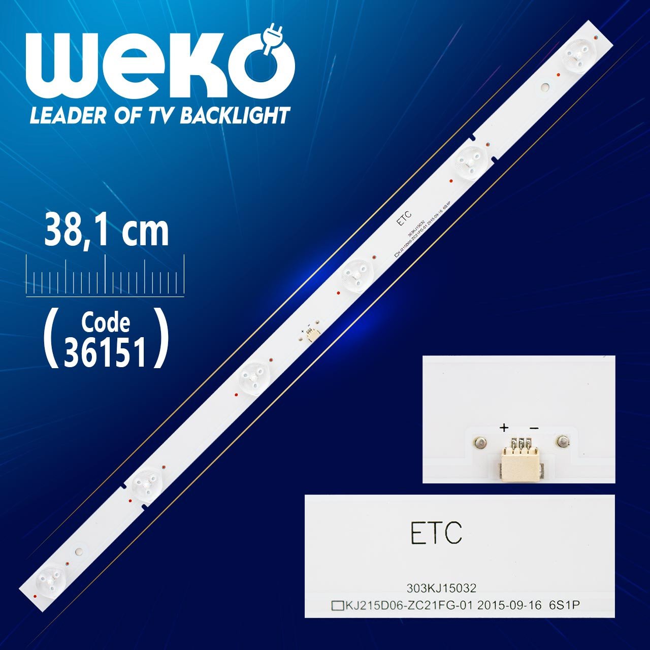 6 Diodes 3V size:38.1cm 1set-2pcs Panel: KM0215LDAF013 TV AWOX 2201,