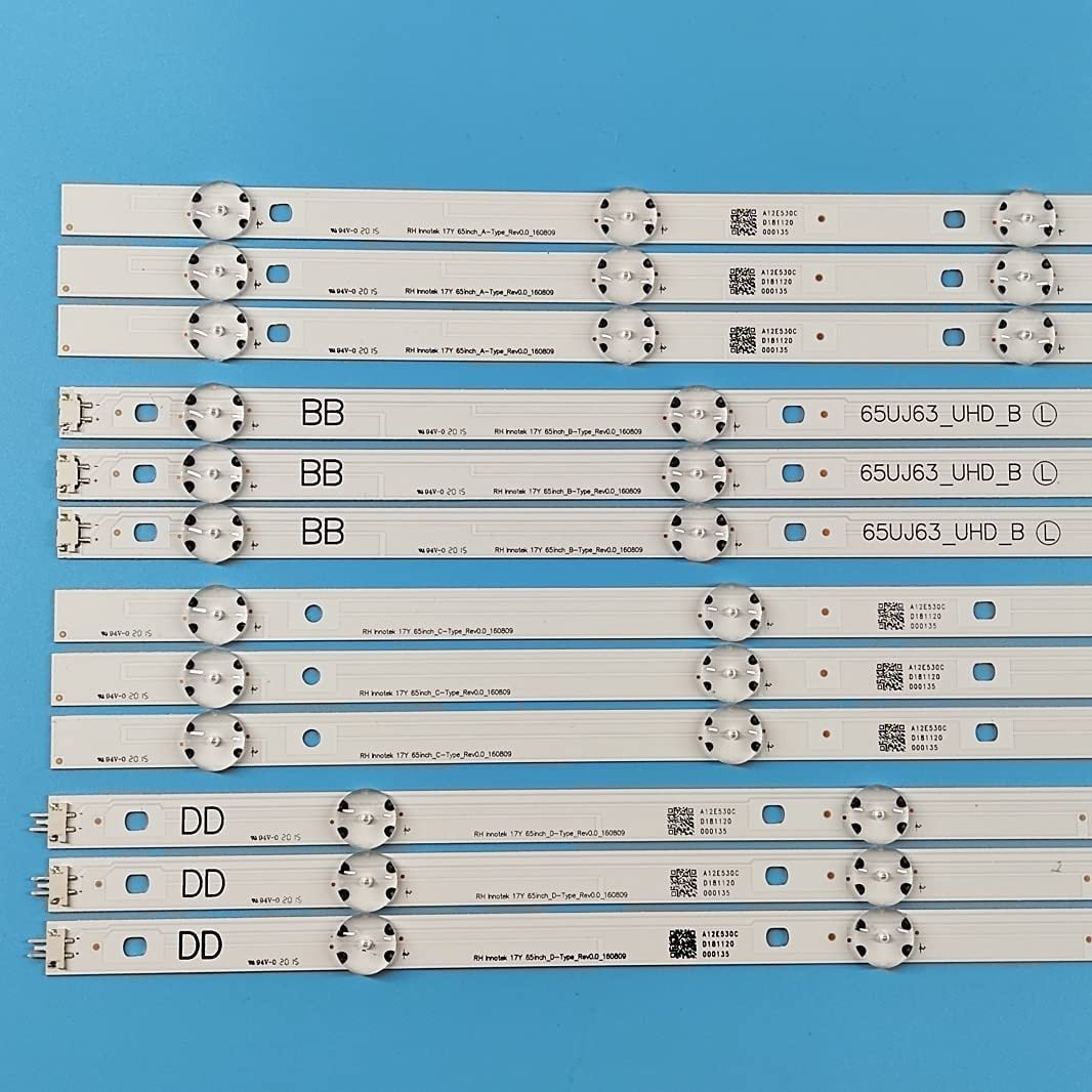 10 Diodes size:133 cm 1set- 3x(A+B+C+D)x -66.5Ccm :LG 65" UHD NBH LENS, RTMC 17G1B 00238 panel:NC650DGE... , TV 65UJ634V, 65UJ5500,65UJ630V WK-1239;17Y 65INCH _A-TYPE_REV0.0_160809 - 65UJ63_UHD_A LED563; center-center: A, D тип: 118-118-148-148 мм B, C тип: 140-140-148-148 мм;EASTERN STAR with glue tape;