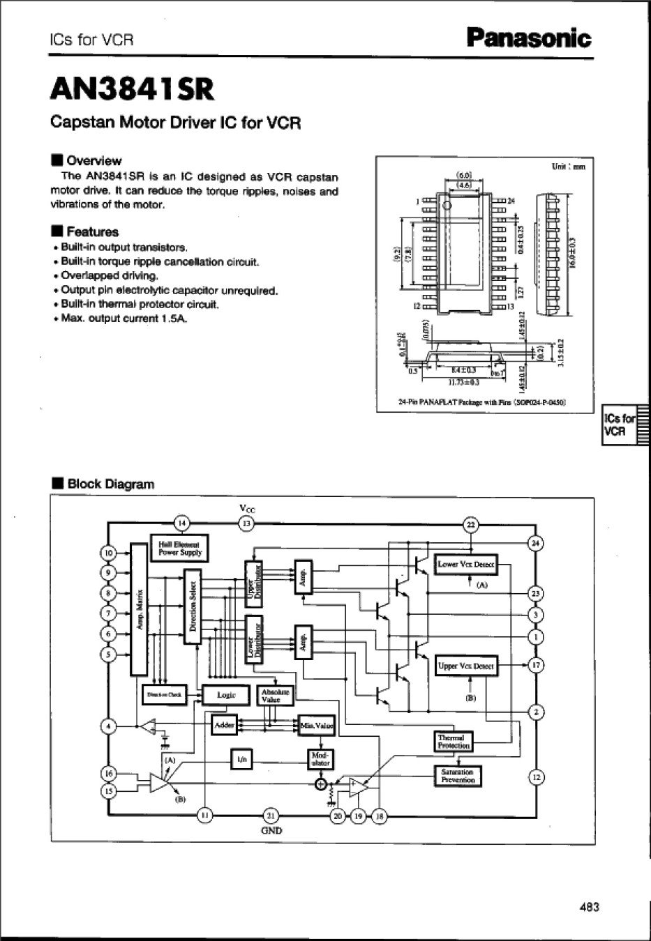 VC/DAT,Capstan Motor Driver,24-MDIP for VCR Panasonic,