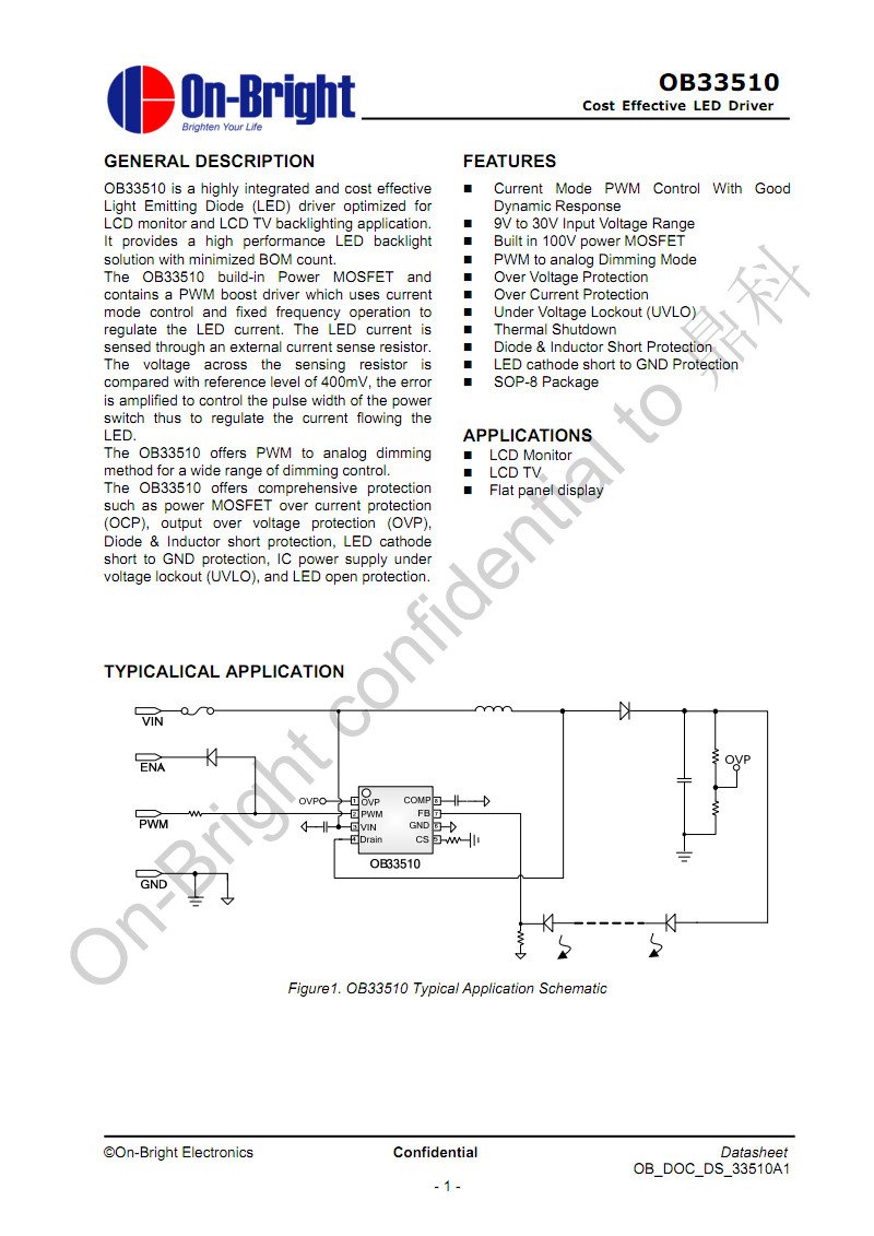 OB33510CP SO-8 LED DRIVER:NEW,
