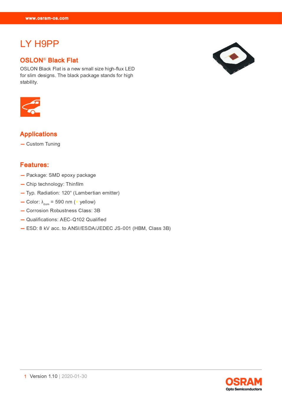 High Power LEDs - Single Colour Yellow OSLON Black Flat ,