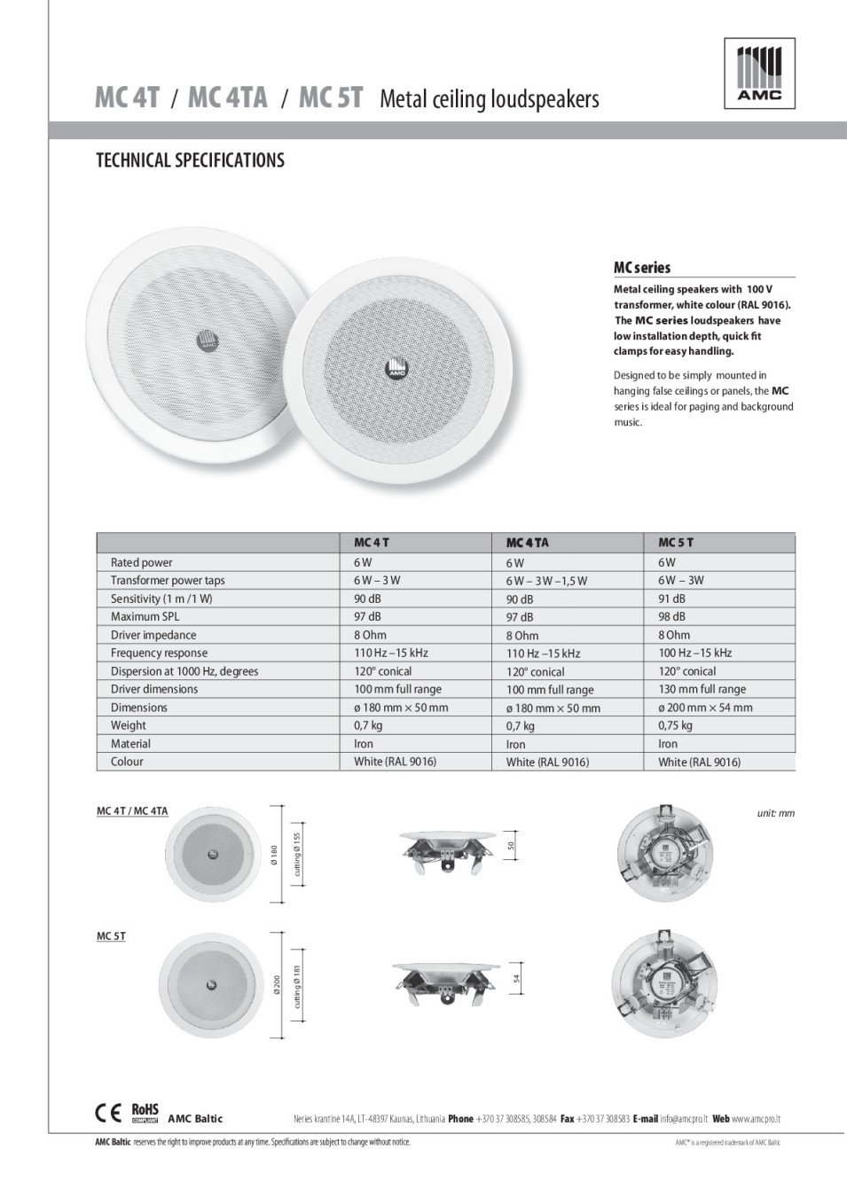 METAL CEILING LOUDSPEAKER MC4TA 6W ,